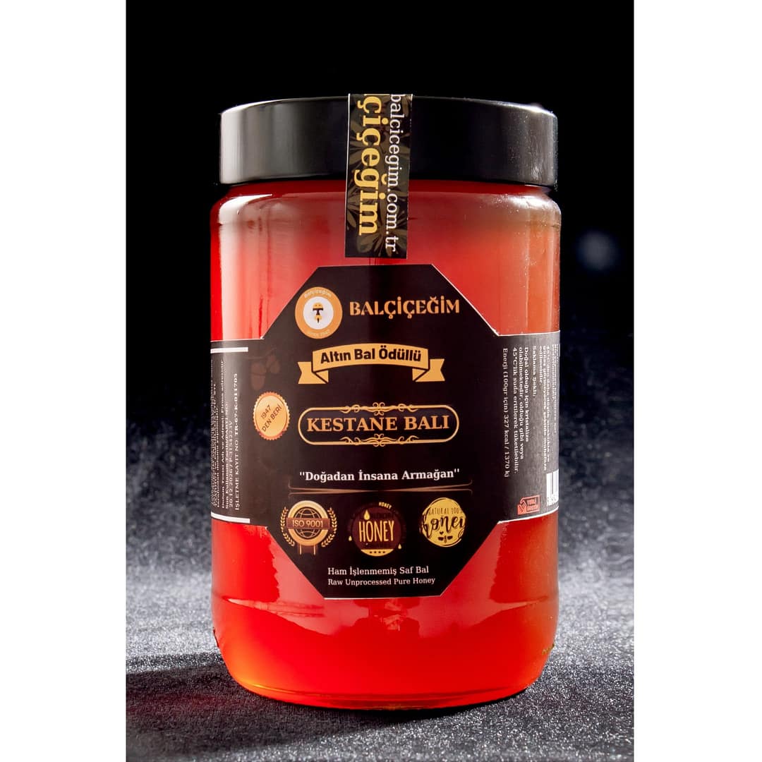 Kestane balı, lezzeti ve saymakla bitmeyen şifaları ile Balçiçeğim raflarının en çok satanlarından biri. Bu ballar, arıların kestane ağaçlarının çiçeklerinden topladığı nektarlarla elde ediliyor. Monofloral bal türlerinden biri olduğu için her insan gönül rahatlığı ile tüketebiliyor. Gerçek bir kestane balı, koyu kahverengi görünümü ve lezzetinden dolayı kolaylıkla ayırt edilebilir. Renginin koyu olması içeriğinde; potasyum, kalsiyum, bakır, demir ve şeker olmasından kaynaklanır. Protein ve enzim oranı arttıkça, kestane balının rengi daha koyu hale gelir.